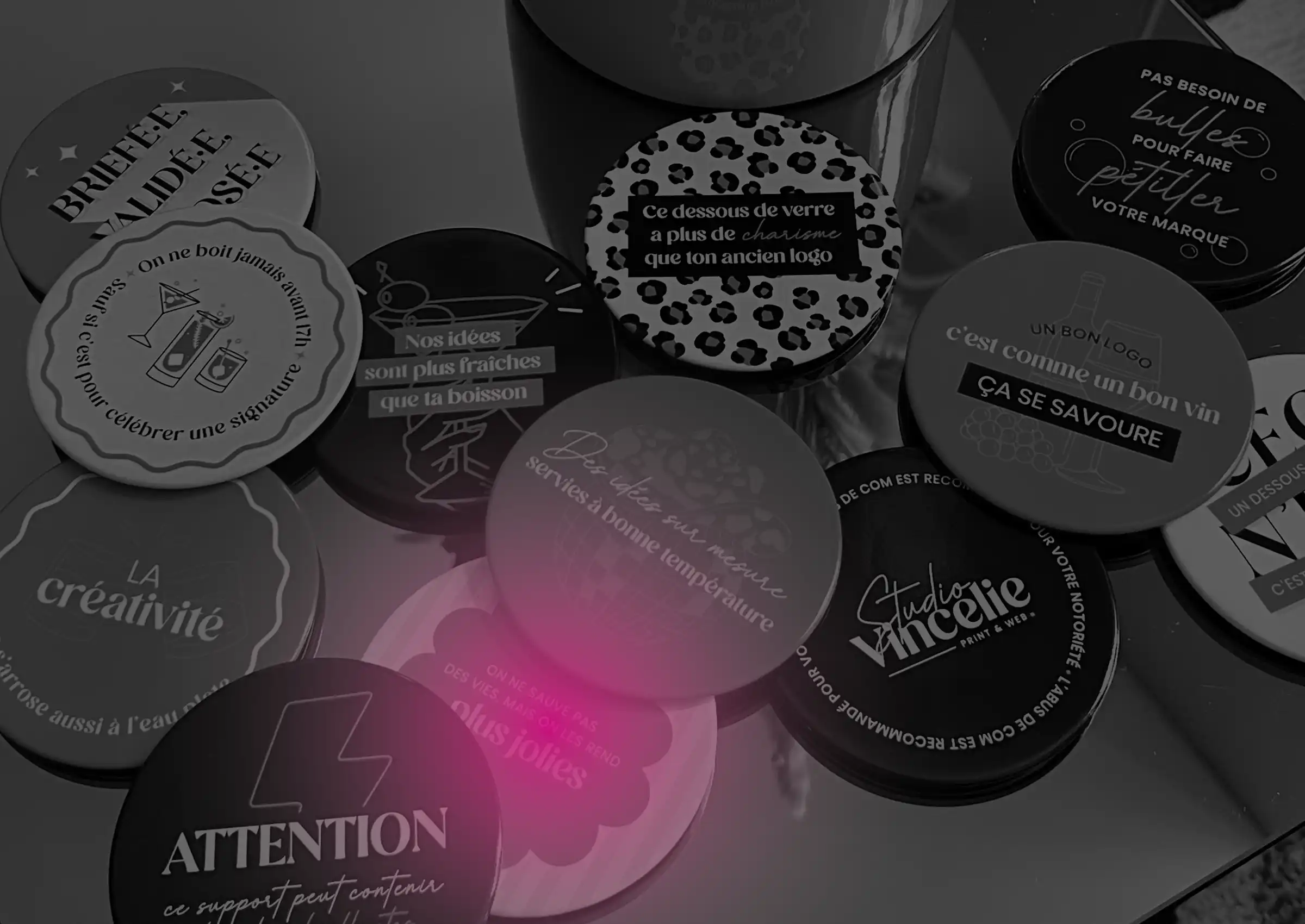 Et bien sûr, demandez notre gamme complète : mugs, stylos, gourdes, sous-verres et bien plus encore !